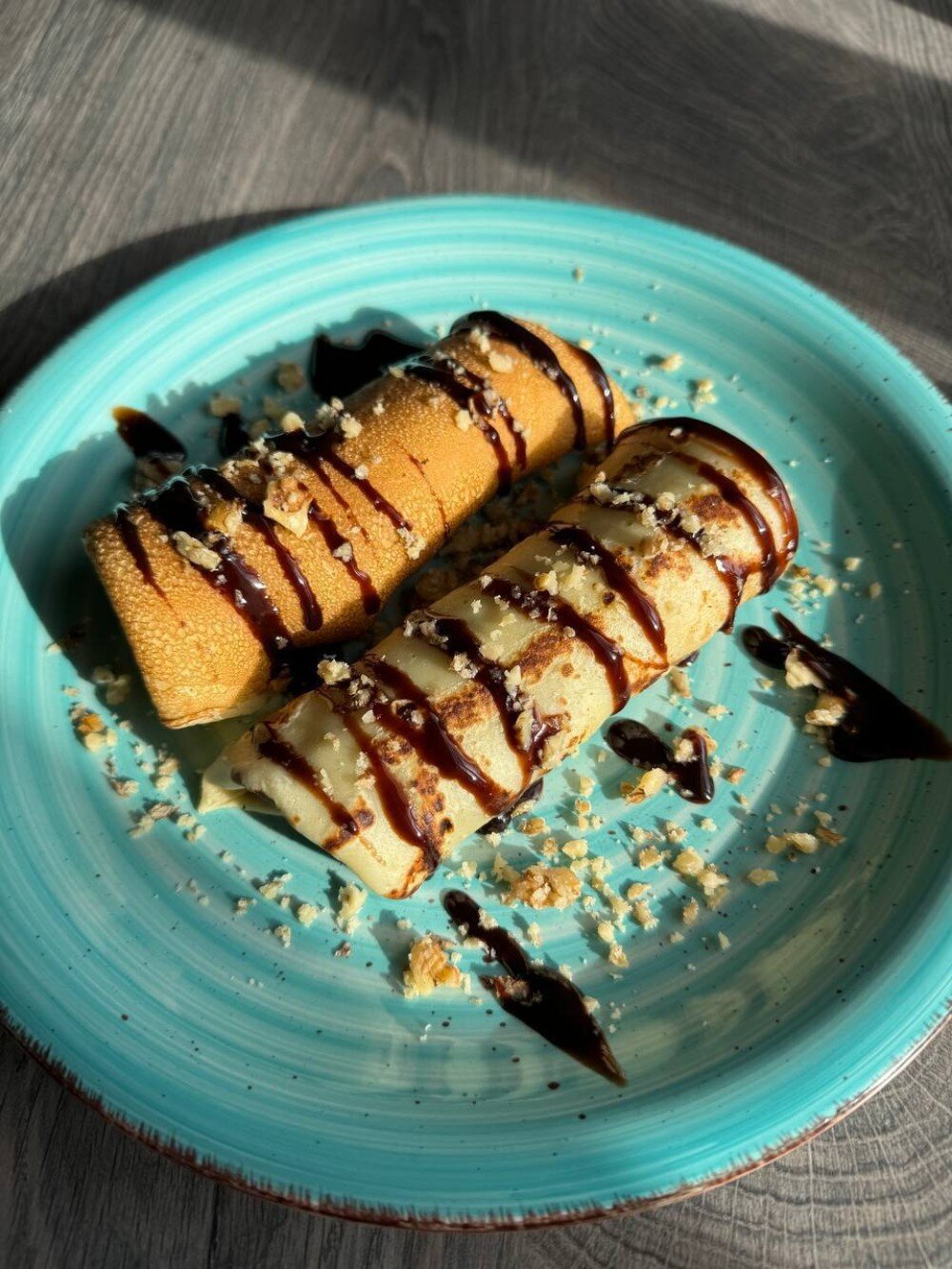Ролл блинчики с вареной сгущенкой и грецким орехом