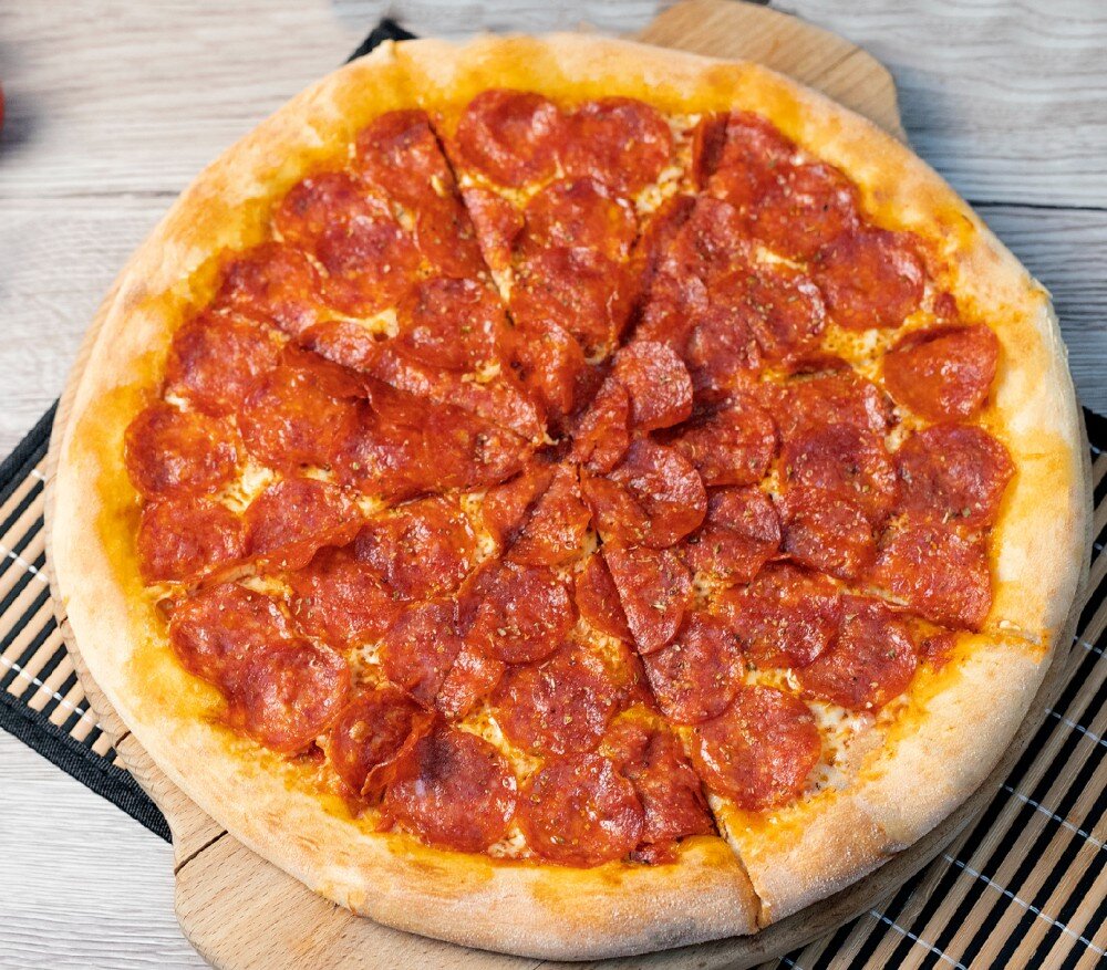 Соус томатный, колбаса "Пепперони" с/к, сыр моцарелла. Диаметр 40 см