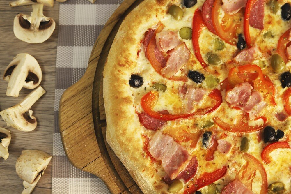 Пицца с ветчиной, шампиньонами и маринованными огурчиками 33 см/630 г