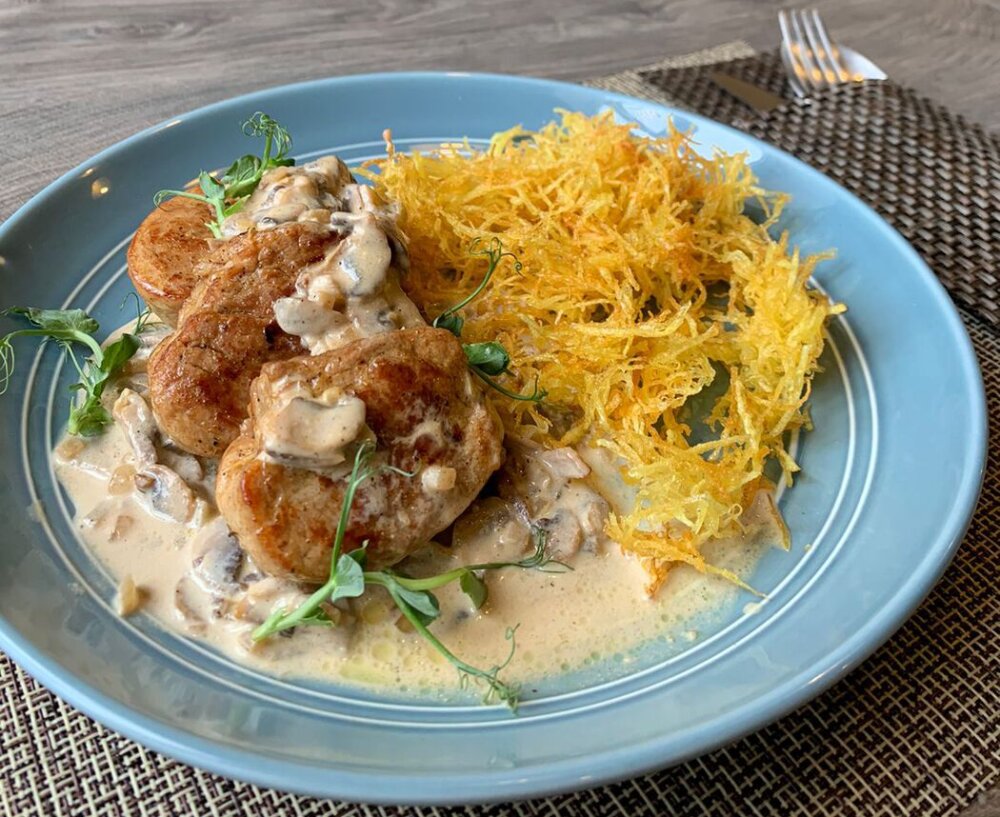 Медальоны в сливочно-грибном соусе